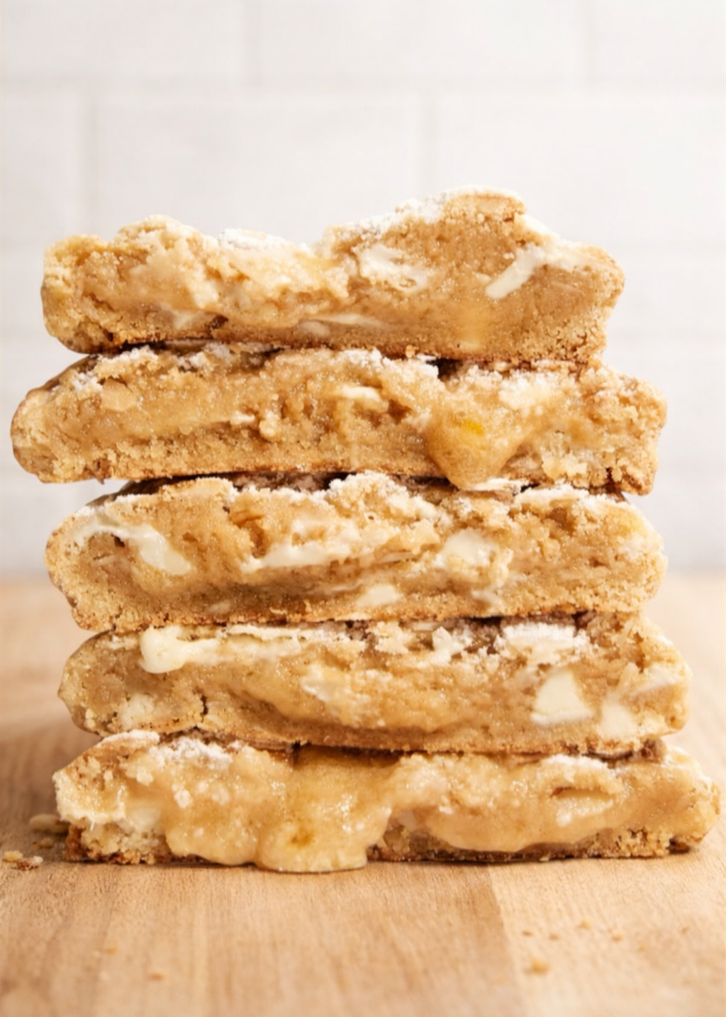 Le cookie amande chocolat blanc de BCookies, c’est la douceur réinventée. Une base vanillée à l’amande, des pépites fondantes de chocolat blanc et un cœur crémeux à l’amande qui fait chavirer les papilles.